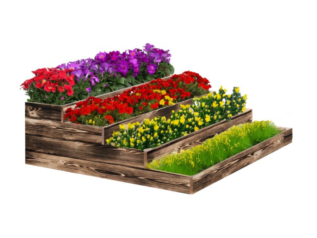 4-stöckiges Blumenbeet aus Holz 120 x 120 x 40 cm - geflammt