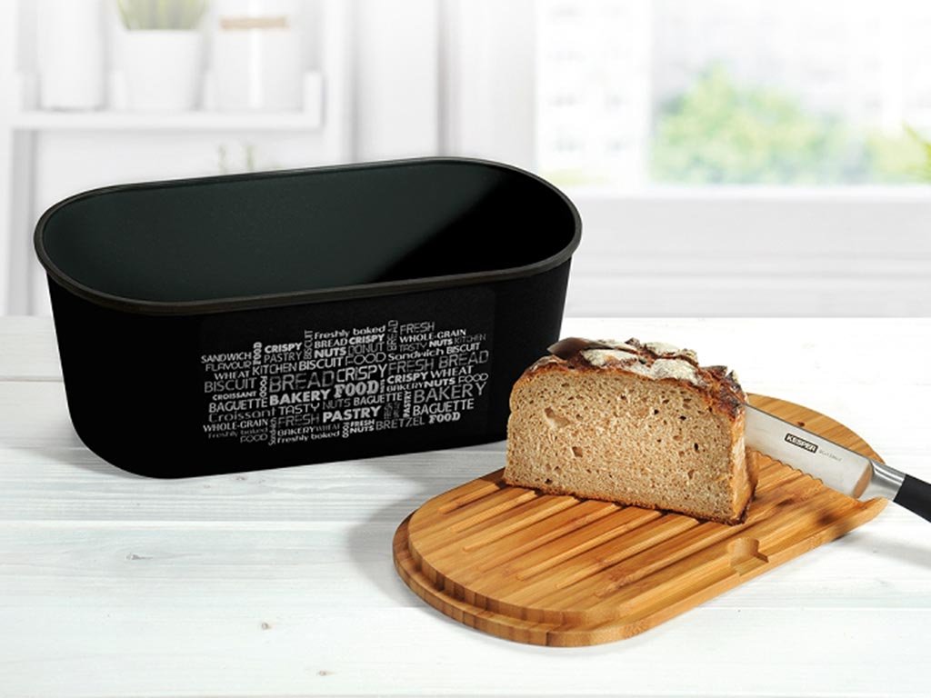 Der Brotkasten mit Schneidebrett in elegantem Schwarz wird die Einrichtung Ihrer Küche perfekt ergänzen. Ein hochwertiger Helfer, der dafür sorgt, dass Ihre Backwaren länger frisch und knusprig bleiben.