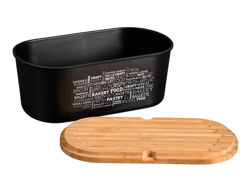 Der elegante schwarze Brotkasten mit Schneidebrett aus Bambus passt perfekt in Ihre Küche. Der Brotkasten bietet eineattraktive und praktische Möglichkeit, Ihre Backwaren länger frisch zu halten.