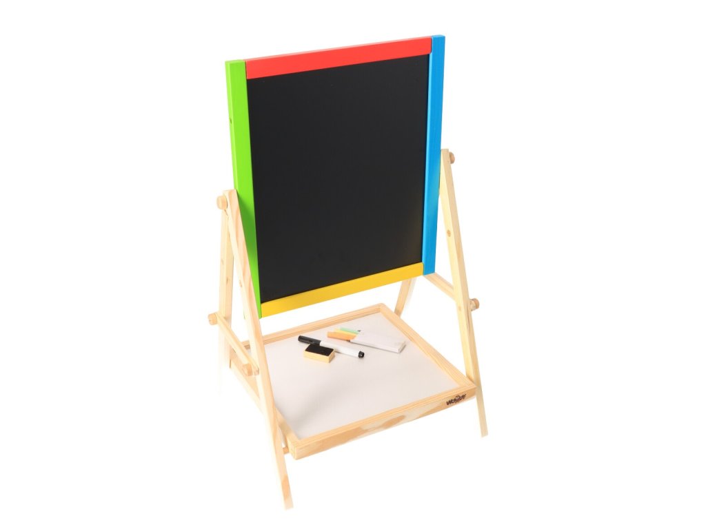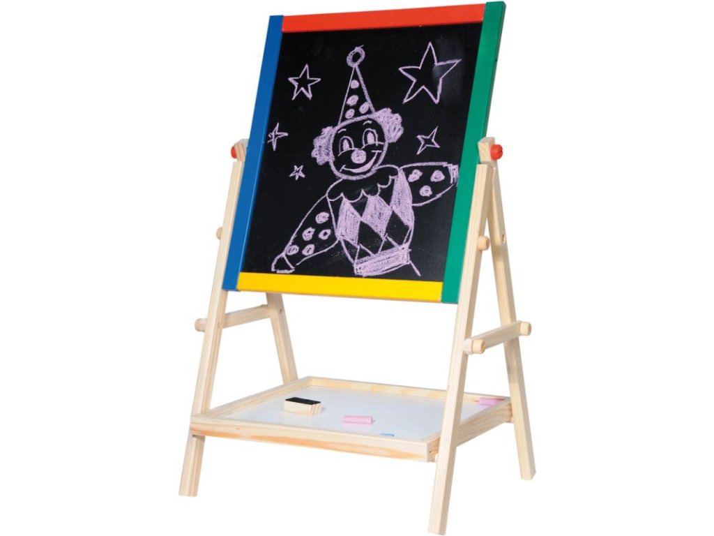 Kinderholztafel mit Ablage mit einer Gesamthöhe von 65 cm.