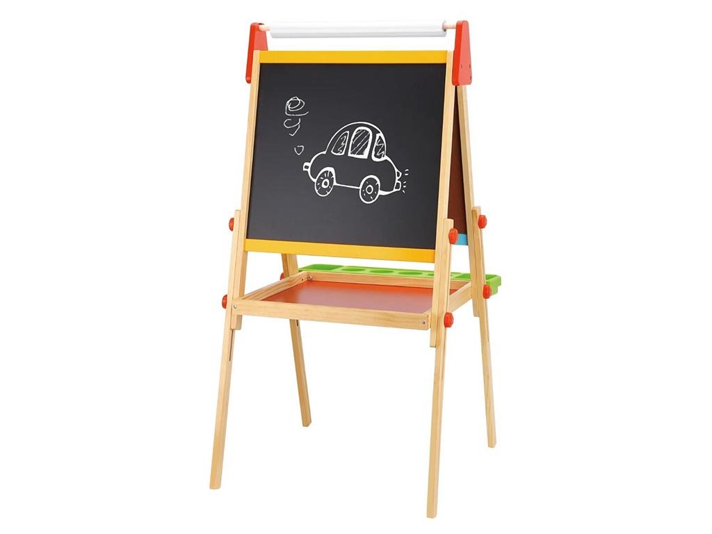 Fördern Sie die Kreativität Ihres Kindes und seine ersten Lernschritte. Die doppelseitige Holztafel bietet den idealen Platz zum Zeichnen, Schreiben und spielerischen Lernen. Dank der zwei unterschiedlichen Oberflächen können Kinder selbst entscheiden, ob sie mit Kreide oder Filzstiften malen möchten – für immer neue kreative Möglichkeiten.