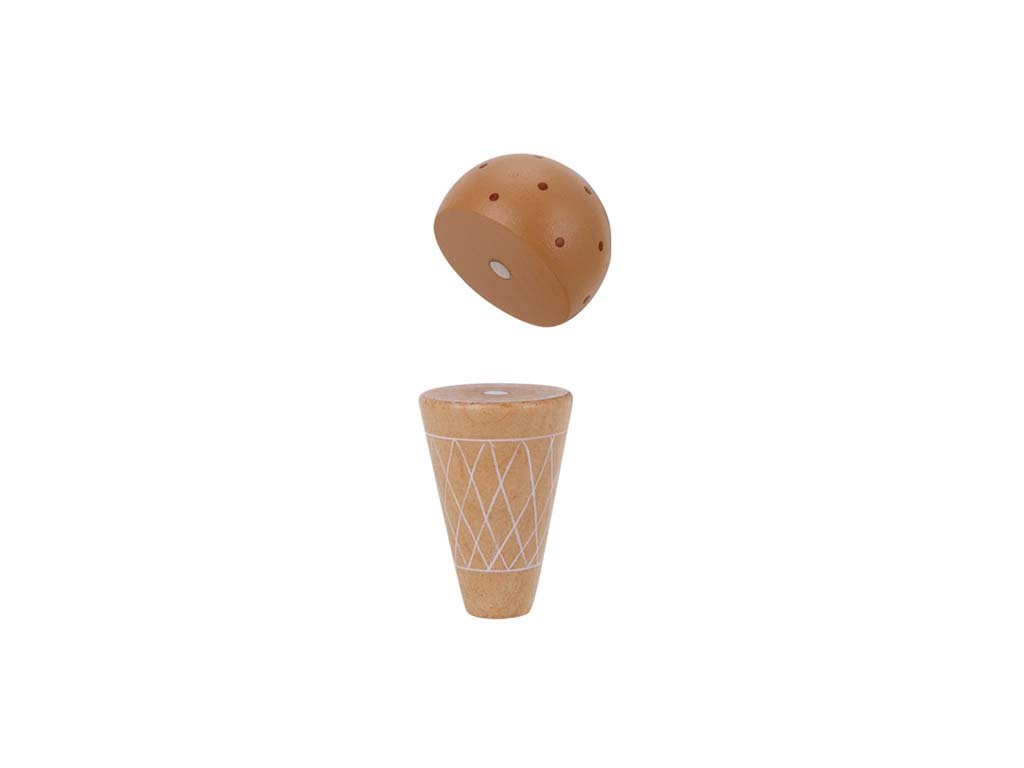 Der Kinder-Eisstand mit Zubehör unterstützt die Entwicklung von Kommunikations- und Sozialkompetenzen. Das realistische Aussehen und die Funktionen fördern Kreativität, Fantasie und Selbstständigkeit der Kinder. Mit dem Holzlöffel schöpfen sie eine Kugel Eis und platzieren diese dank eines starken Magneten passgenau auf der Waffel.