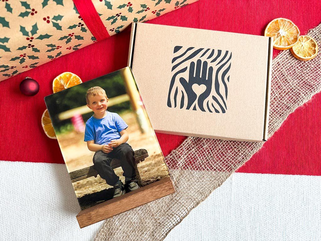 Sie erhalten außerdem einen Massivholzständer zum Foto. Vergessen Sie vor der Bestellung nicht zu wählen, ob Sie eine helle oder dunkle Variante des Ständers wünschen.