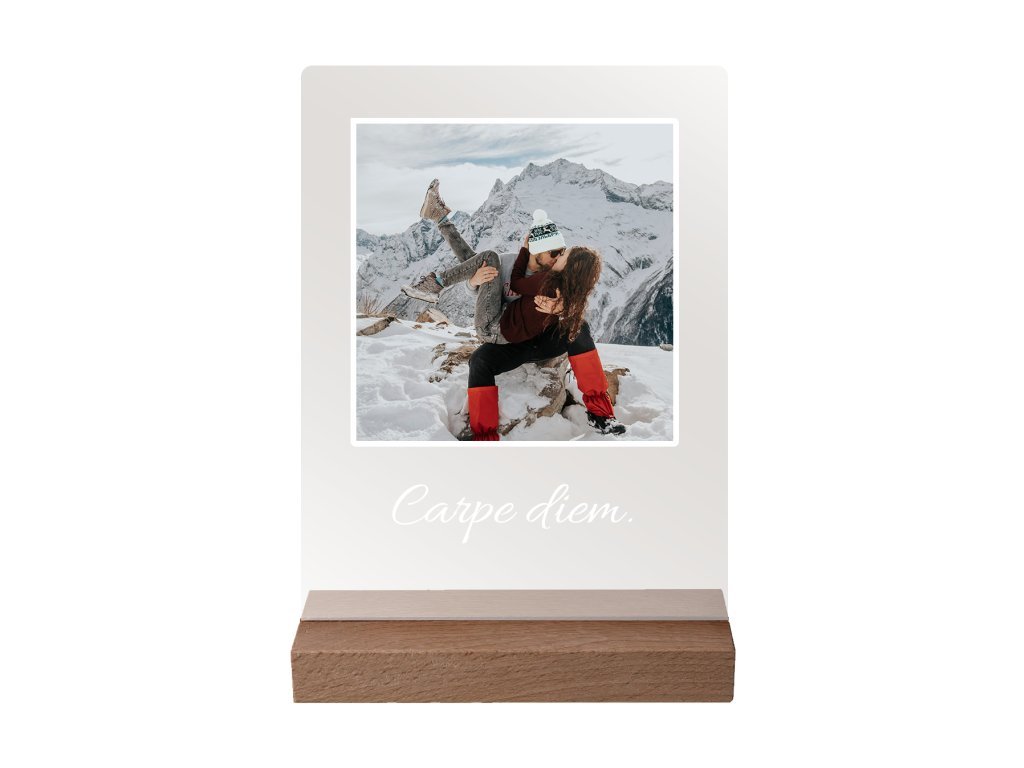 Das Foto besteht aus hochwertigen Materialien und ist resistent gegen Beschädigungen und Kratzer. Dank des einzigartigen Designs und des praktischen natürlichen Sockels wird das Foto sogar zu einer stilvollen Dekoration, die für jeden Raum geeignet ist. Sie können das Foto auf einen Couchtisch, eine Kommode und ein Holzregal stellen, um eine einzigartige Dekoration zu schaffen. Bevor Sie die Dekoration ausstellen, denken Sie daran, die Abdeckfolie von der Rückseite zu entfernen.