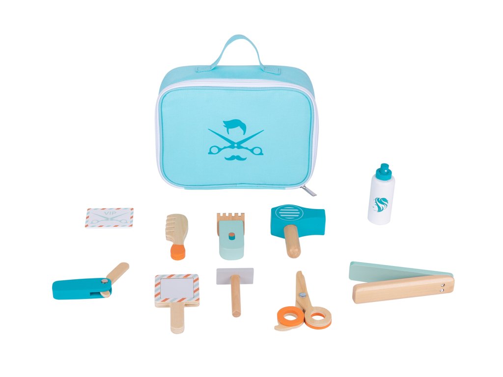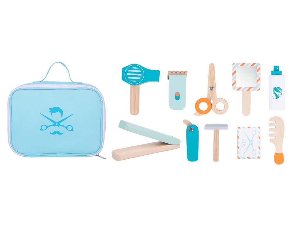 Ein Friseursalon im Kinderzimmer? Na klar! Mit dem Friseurset aus Holz können Kinder in die Rolle eines Friseurs schlüpfen und eigene Frisuren für Freunde, Eltern oder ihre Lieblingskuscheltiere kreieren. Das Rollenspiel fördert die Fantasie und sorgt für jede Menge Spaß beim gemeinsamen Spielen.