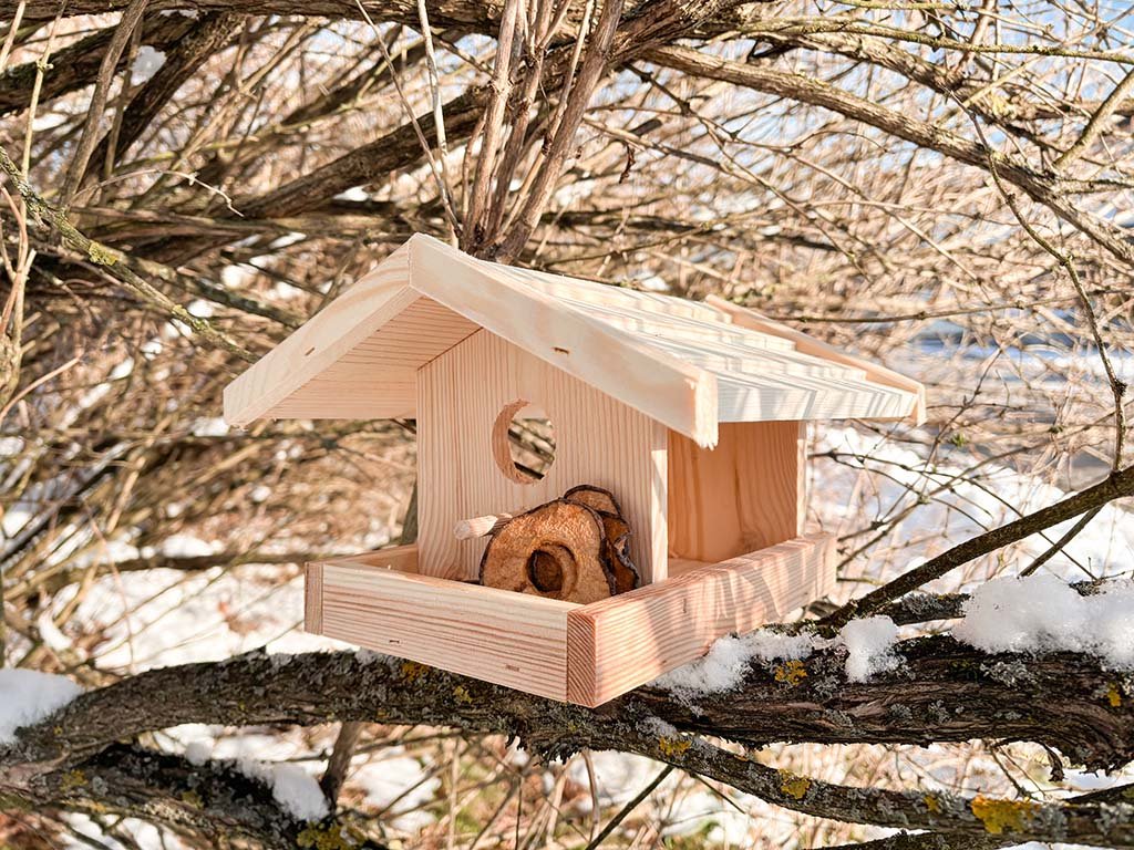 Erfreuen Sie Vögel aus der breiten Umgebung mit einem stilvollen Vogelfutterhaus aus Kiefernholz. Sie werden mit einem guten Gefühl und der Möglichkeit belohnt, die verschiedenen Vogelarten zu beobachten, die in der Nähe Ihres Hauses leben.