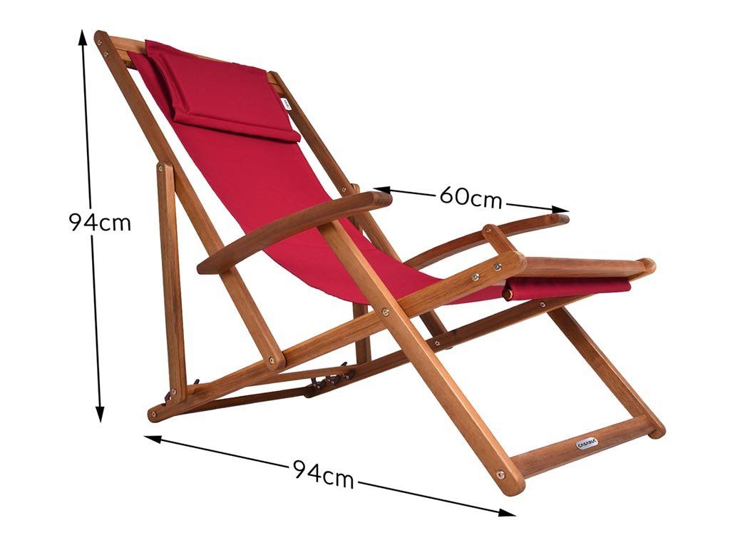Die Liege ist in drei Positionen verstellbar und lässt sich leicht zusammenklappen, wodurch sie einfach zu transportieren und zu verstauen ist. Armlehnen sowie ein abnehmbares, gepolstertes Kopfkissen mit Klettverschluss sorgen für Komfort. Der atmungsaktive Stoff passt sich dem Körper an und verhindert Schwitzen, selbst bei längerem Sitzen.