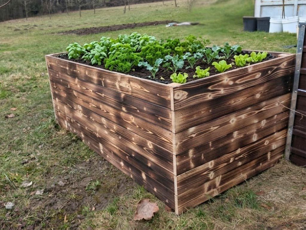 Hochbeet aus Holz 160 x 100 x 60 cm - geflammt