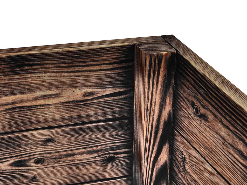Das Abflammen des Holzes erhöht den Schutz vor Witterungseinflüssen, das Beet ist auch widerstandsfähiger gegen holzzerstörende Pilze und Insekten. Während der Lebensdauer des Produkts ist es nicht notwendig, seine Oberfläche mit Schutzmitteln zu streichen.