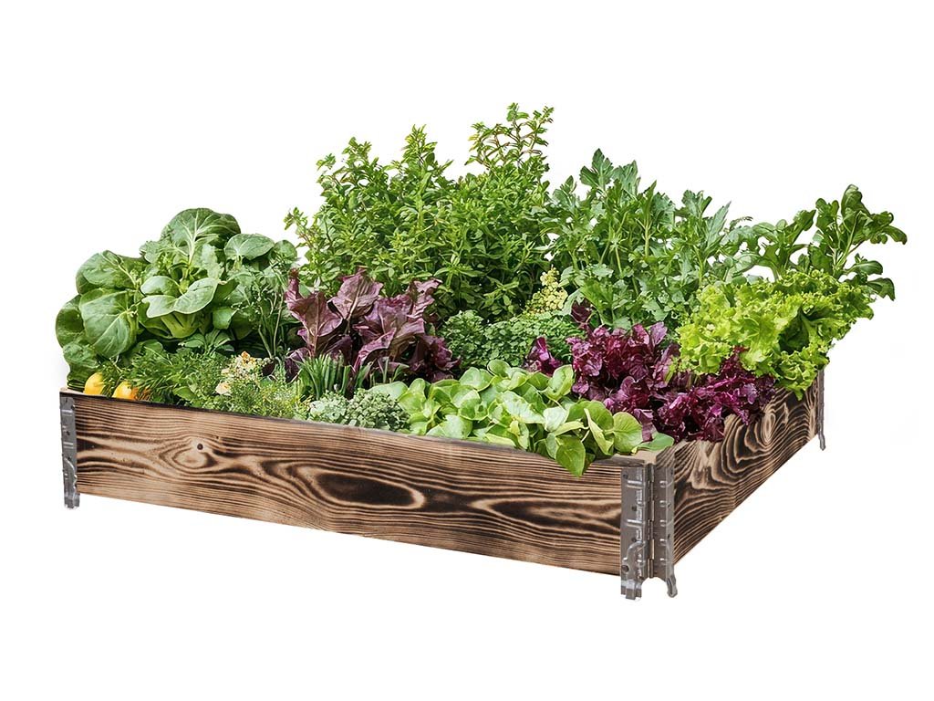 Hochbeet aus Holz mit Beschlägen 120 x 100 x 20 cm - geflammt