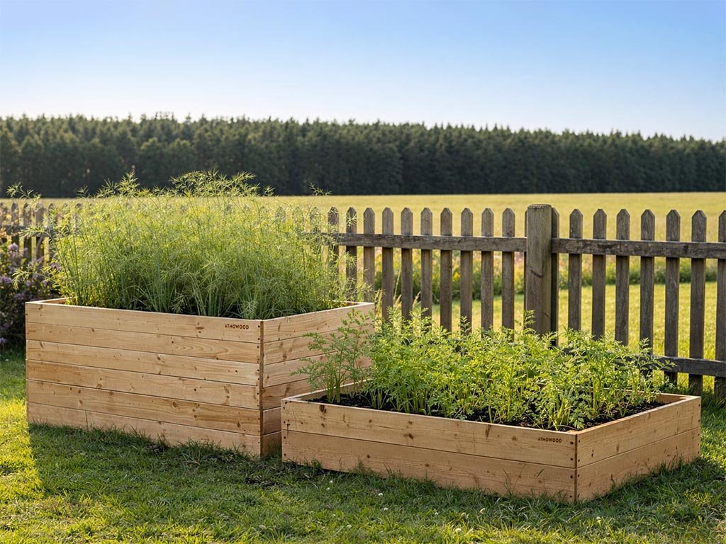 Hochbeet aus Lärchenholz der tschechischen Marke ATMOWOOD - Ihr Gartentraum zum Greifen nah. Das robuste Massivholz trotzt Regen und Sonne und ermöglicht komfortables Gärtnern ohne unnötigen Aufwand.