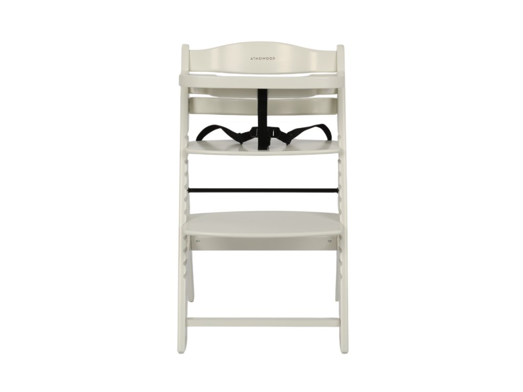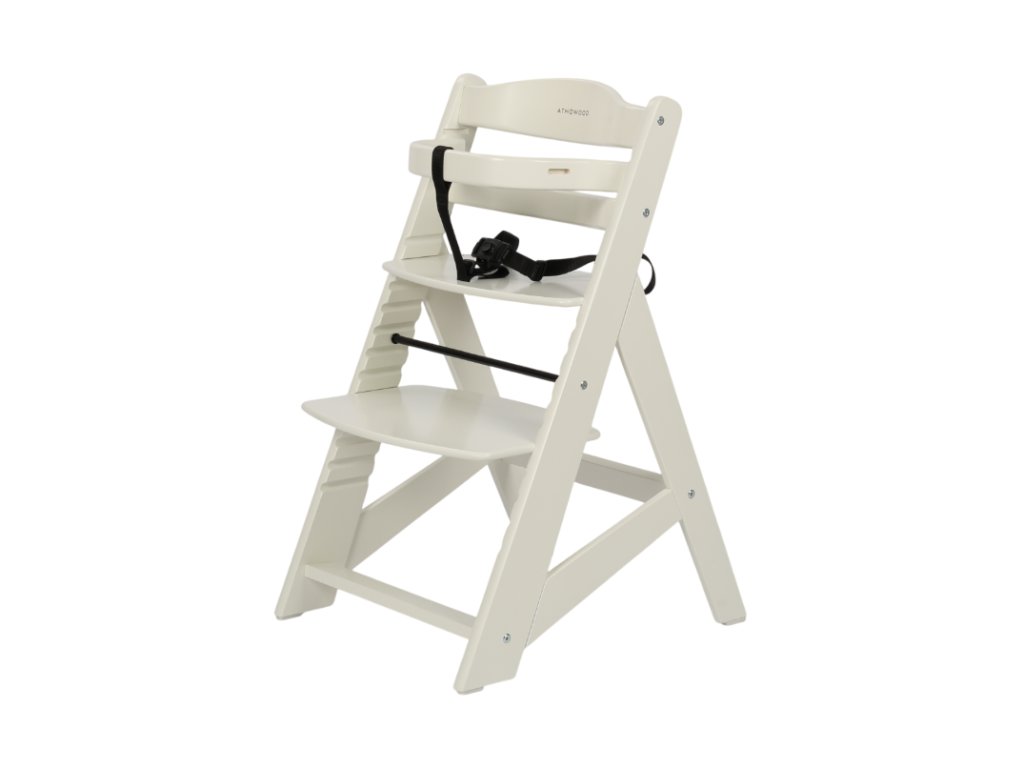 Der weiße Esszimmerstuhl aus Holz von AtmoWood ist eine praktische und elegante Lösung für ein sicheres Essen der Kleinsten. Dank seines leichten Designs passt er sich harmonisch jeder Einrichtung an und bietet Stabilität, Komfort sowie einfache Pflege.