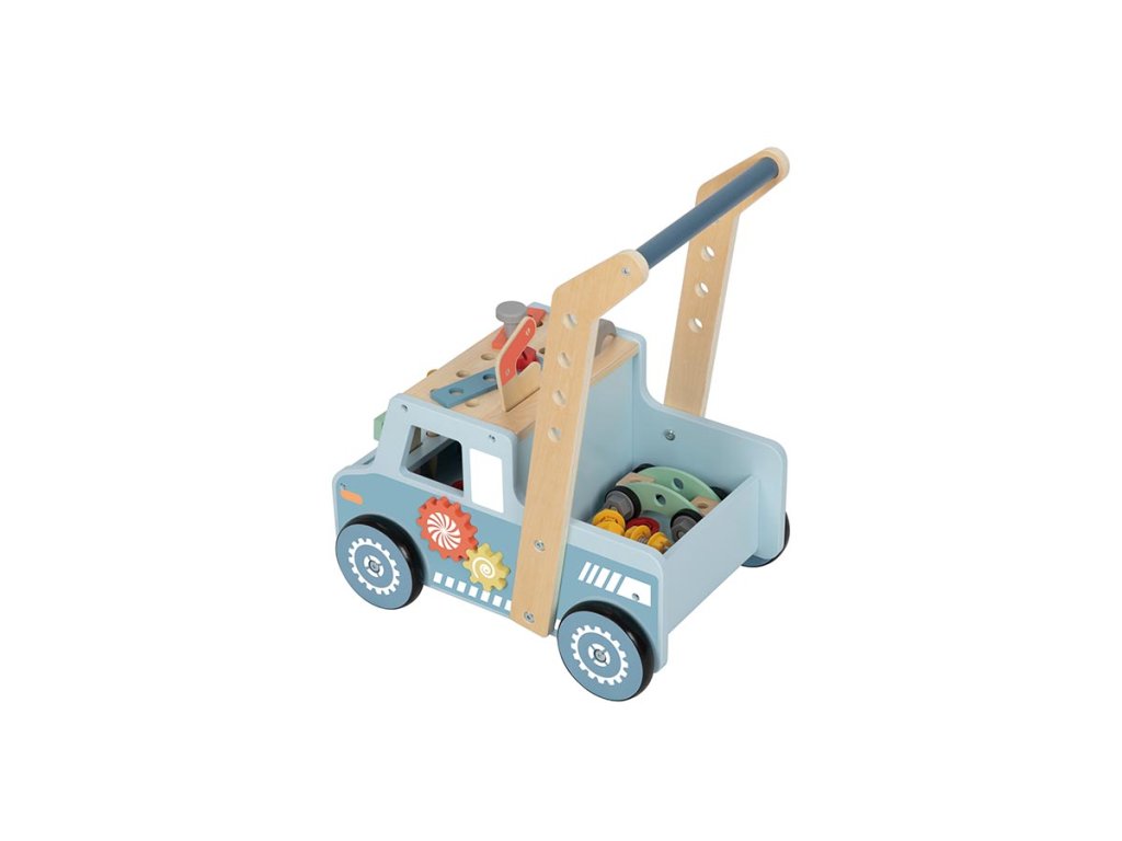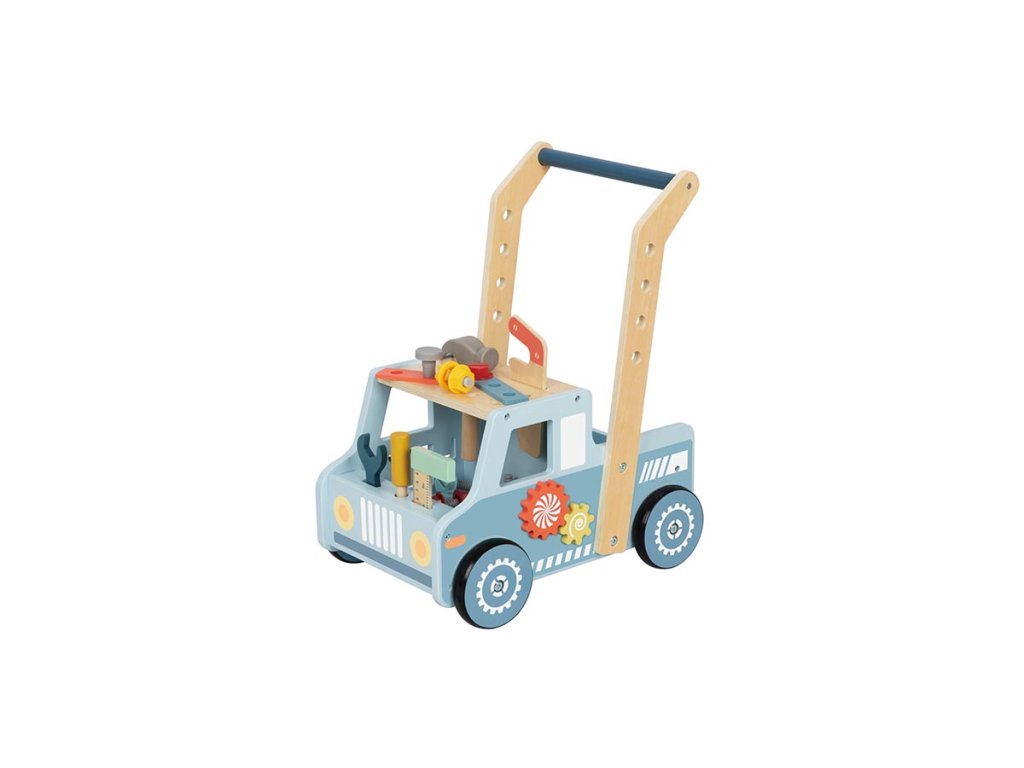Der multifunktionale Holz-Lauflernwagen in Form eines Spielzeugautos ist ein idealer Helfer für die ersten Schritte und gleichzeitig ein lustiges Spielzeug für längeres Spielen. Kinder können ihn beim Gehen als stabile Stütze nutzen und gleichzeitig mit dem reichhaltigen Werkzeug- und Zubehörset spielen, das im Inneren versteckt ist.