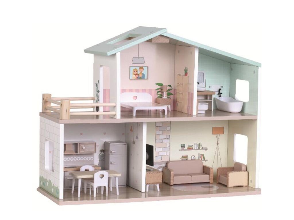 Das Puppenhaus ist aus hochwertigem und robustem Holz gefertigt, das auch bei täglichem Spielen eine lange Lebensdauer garantiert. Die schlichte und freundliche Gestaltung fördert die Kreativität – das Kind wird nicht durch zu viele Details eingeschränkt, sondern kann seine eigene Fantasie einsetzen und sich eine individuelle Welt nach seinen Vorstellungen erschaffen. Das Spielen mit dem Puppenhaus hilft Kindern, zwischenmenschliche Beziehungen besser zu verstehen, Empathie zu entwickeln und bei gemeinsamen Spielen mit Geschwistern oder Freunden Kooperation zu lernen.