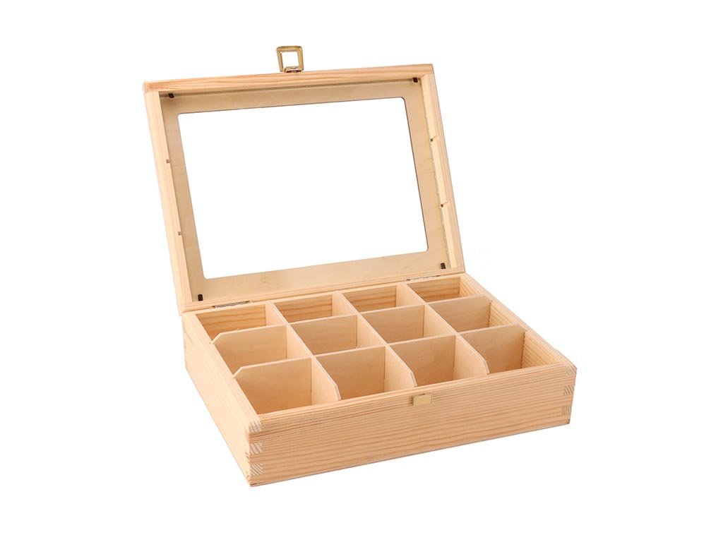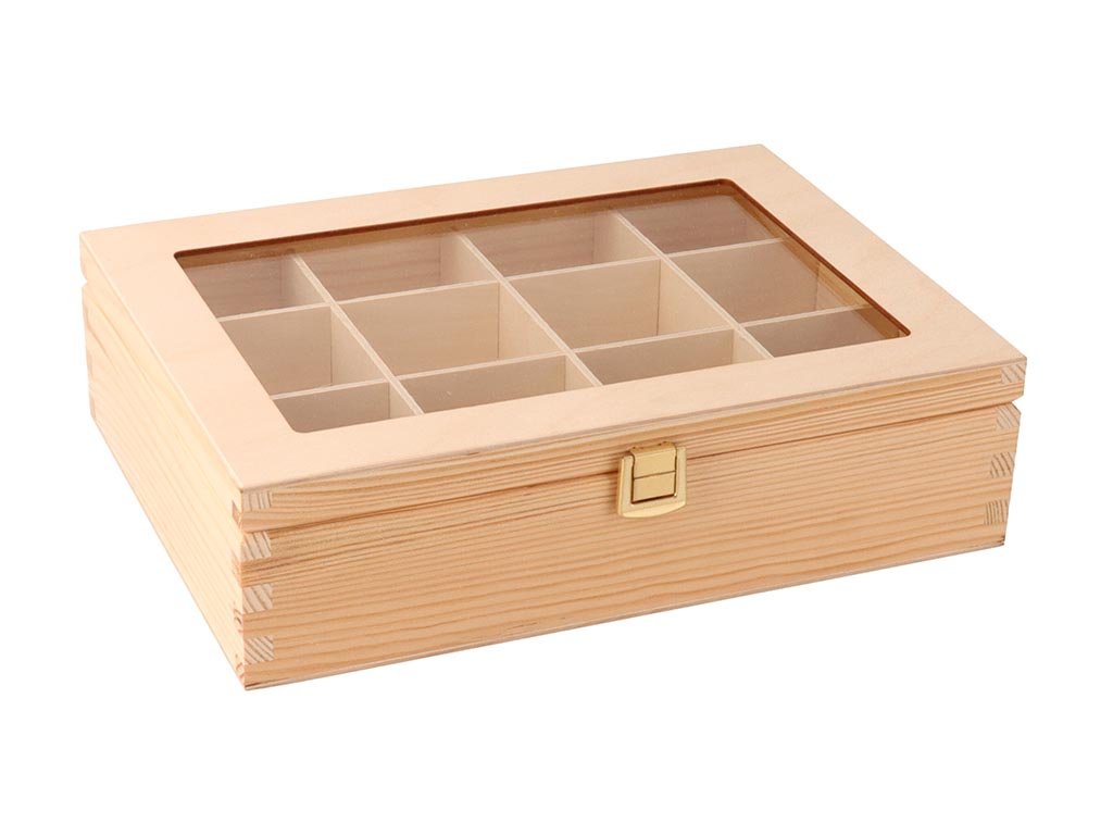 Eine schöne Holzbox mit sicherem Verschluss, in der Sie Ihre Lieblingstees, aber auch Schmuck und Perlen aufbewahren können. Dank des transparenten Glasdeckels haben Sie immer Überblick über den Inhalt.