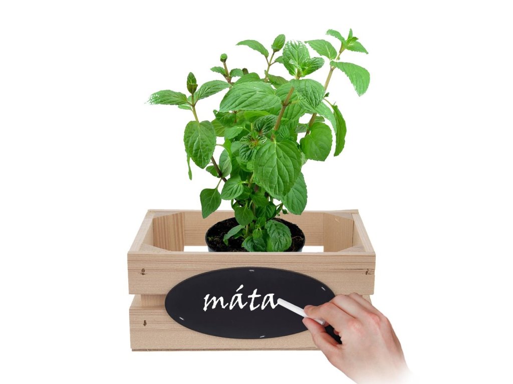 Die Innenmaße des Kistchens betragen etwa 18 x 12,5 x 6,5 cm. Wir empfehlen zum Beispiel, einen Topf mit einem Kraut in die Box zu stellen und dessen Namen auf die Tafel zu schreiben. So schaffen Sie eine schöne und nützliche Dekoration in Ihrem Interieur.