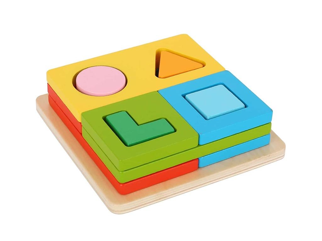 Das bunte Holzpuzzle ist ein ideales Hilfsmittel für die ersten Entdeckungen von Formen und Farben. Die Aufgabe besteht darin, die richtige Form dem entsprechenden Loch auf der Matte zuzuordnen und so logisches Denken sowie Konzentration zu trainieren. Neben den geometrischen Grundformen lernen Kinder auch, Farben zu unterscheiden und Größen zu vergleichen.