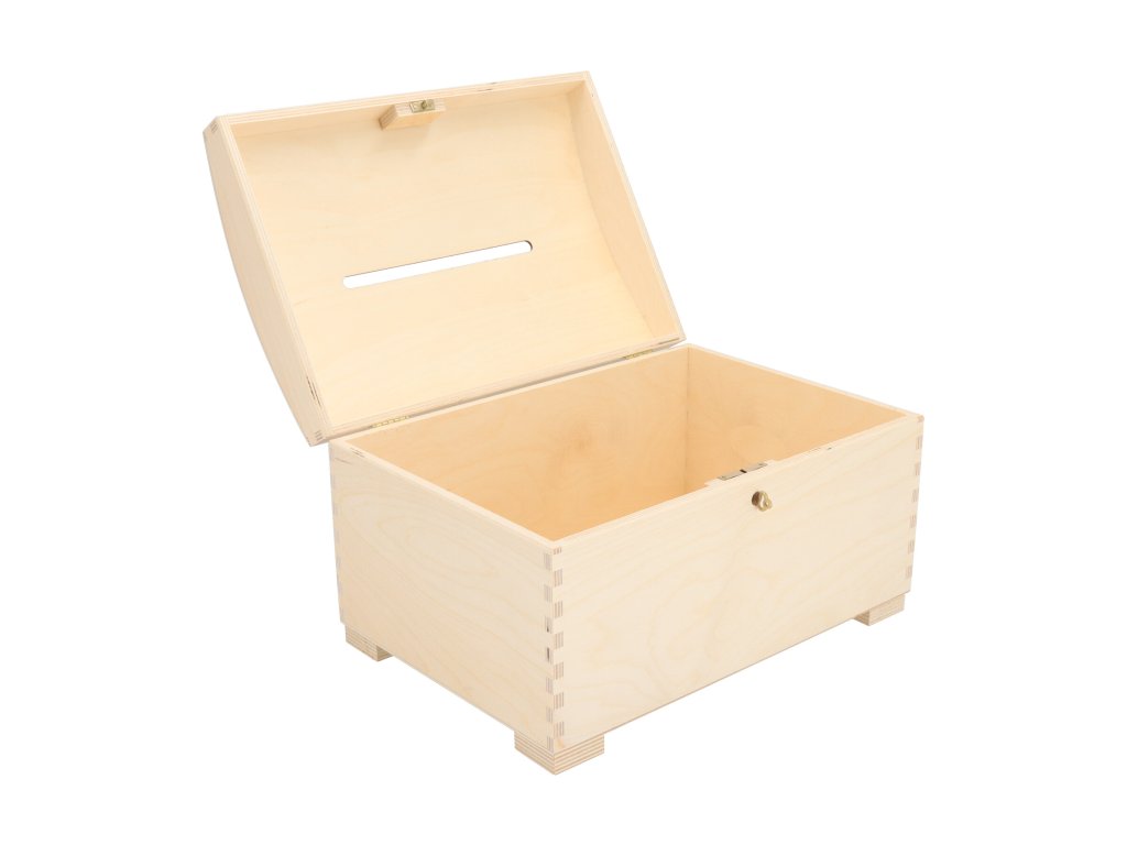 Eine sorgfältig gefertigte Truhe, die sich als Spardose für die ganze Familie eignet. Die Truhe ist ein wunderschönes Designerstück, das sich mit aller Eleganz in Ihr Zuhause einfügen wird.