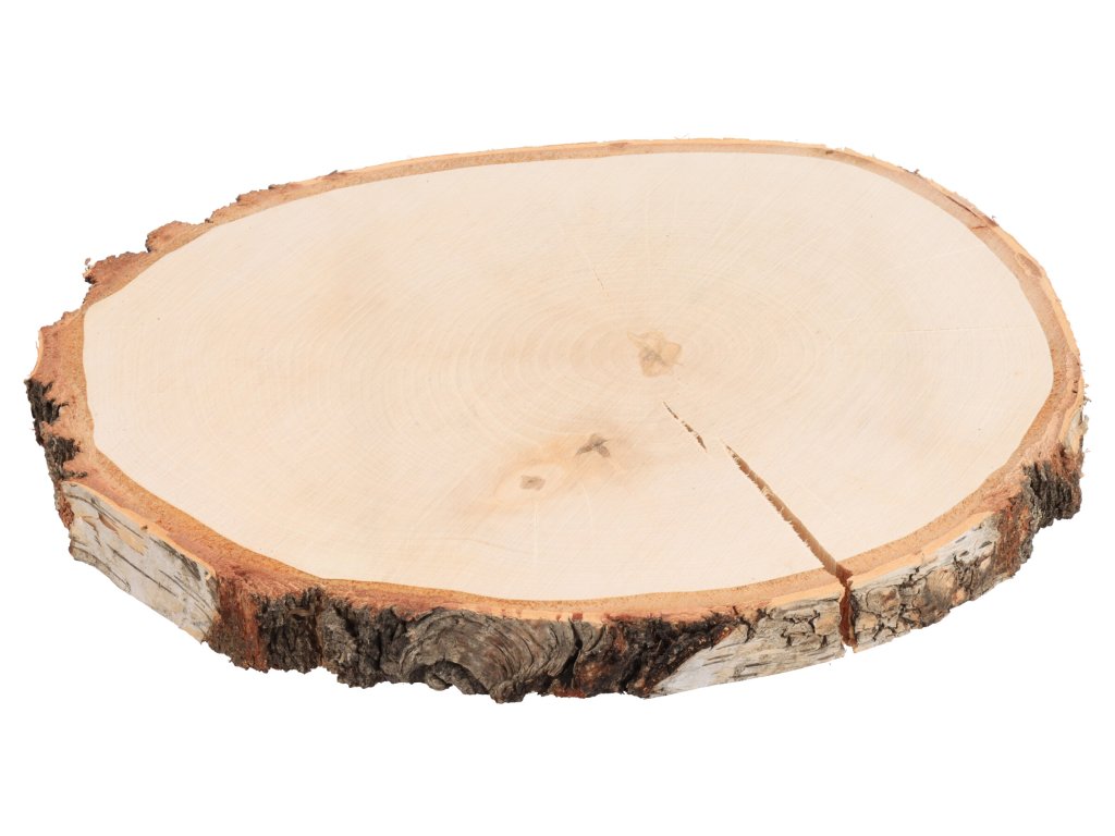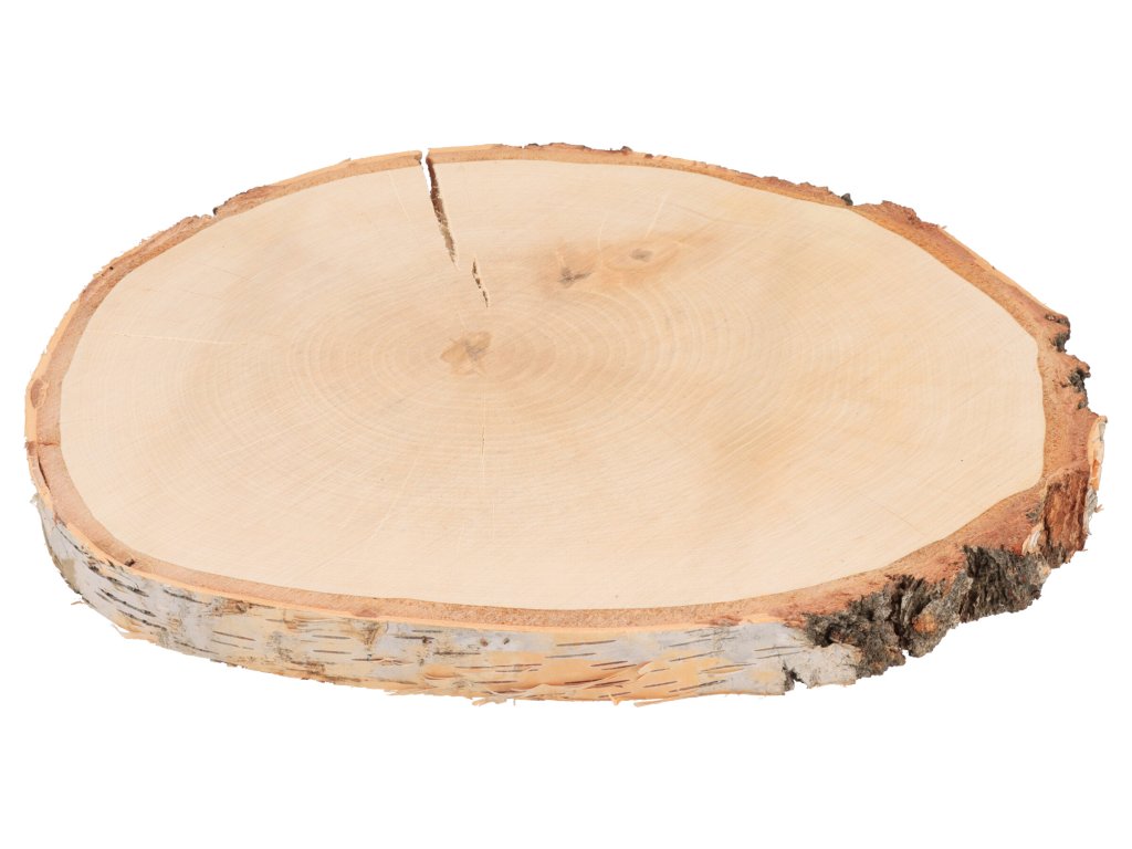 Die Holzunterlage aus einem Birkenstamm mit natürlicher Rinde ist eine schöne Dekoration, die jede Hochzeitstafel ergänzt und in der Weihnachtszeit als Unterlage für einen Adventskranz dienen kann.