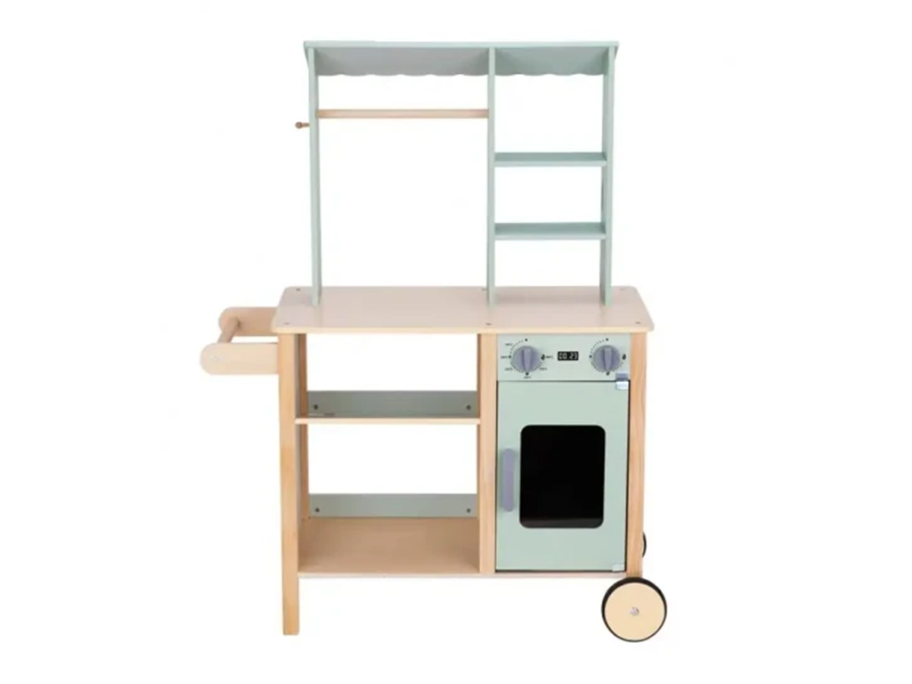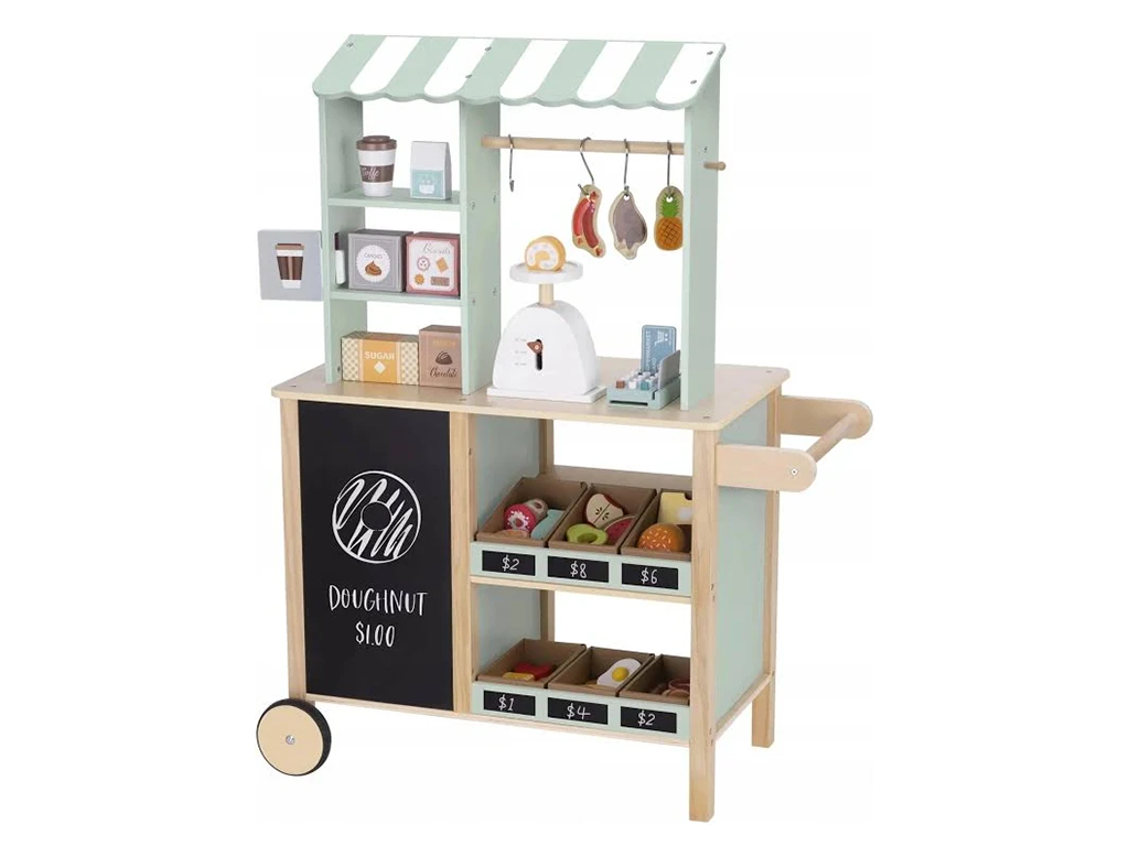 Verwandeln Sie das Kinderzimmer in einen kleinen, lebendigen Laden. Mit diesem Holzverkaufsstand können Kinder in die Rollen von Verkäufer und Kunde schlüpfen und ihre eigenen Einkaufsgeschichten erfinden. Ob Obst, Spielzeug oder imaginäre Leckereien – der Fantasie sind keine Grenzen gesetzt.