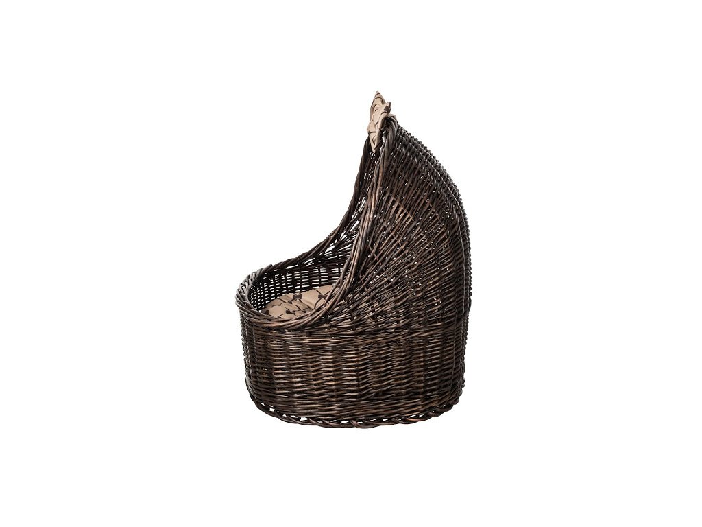 Hundebett aus Weide mit Baldachin – dunkel mit beiger Schleife