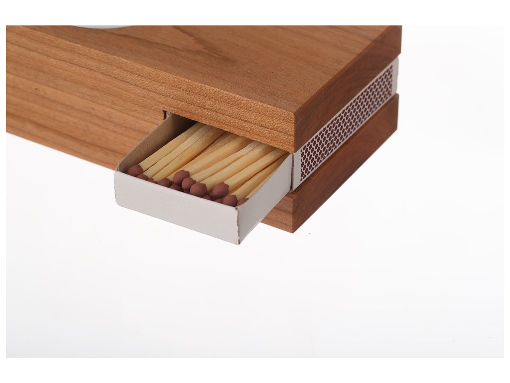 Kerzenhalter aus Kirschholz mit Kerze und Streichhölzern