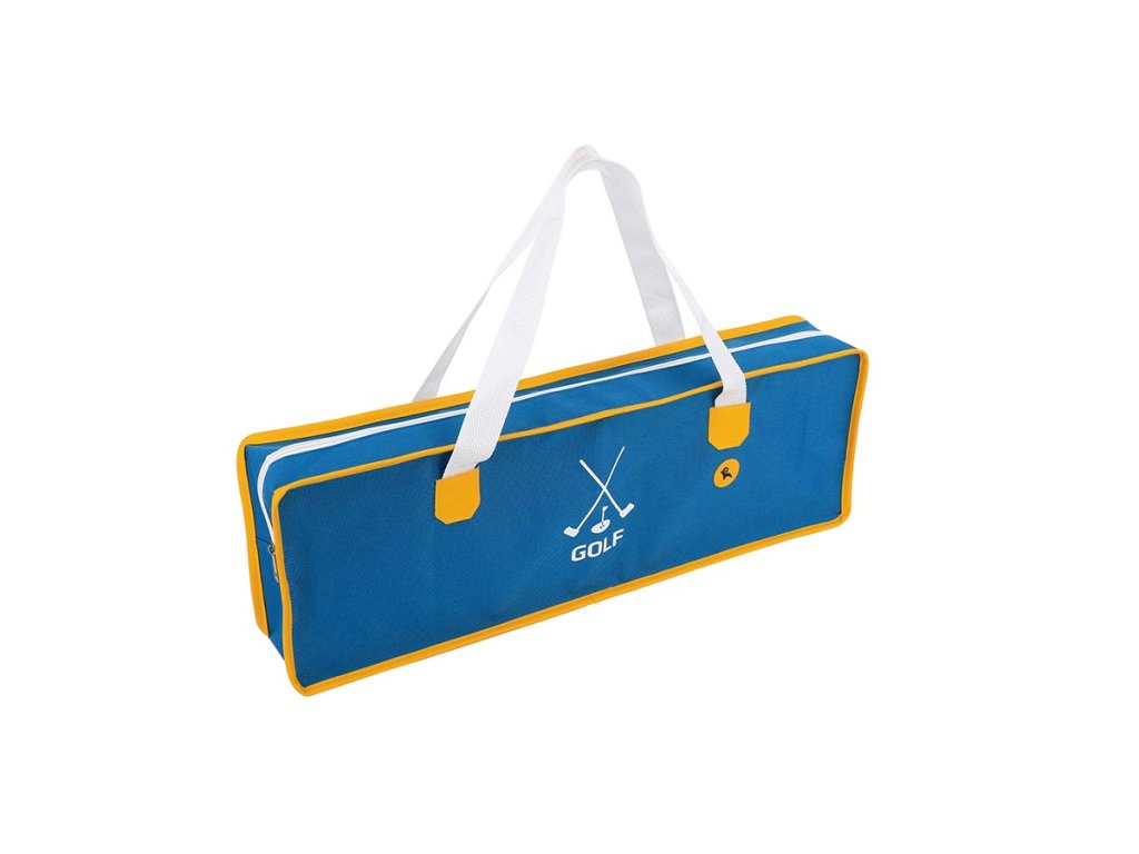 Der Minigolfplatz aus Holz wird mit einer praktischen Tasche zur Aufbewahrung und zum Transport geliefert.