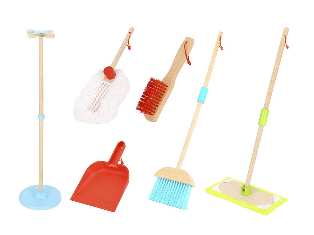 Mit diesem farbenfrohen Holz-Reinigungsset werden kleine Helfer zu echten Hausmeistern oder Hausfrauen. Beim Spielen trainieren Kinder ihre Feinmotorik, lernen Verantwortung und erwerben spielerisch erste Kenntnisse der Haushaltspflege.