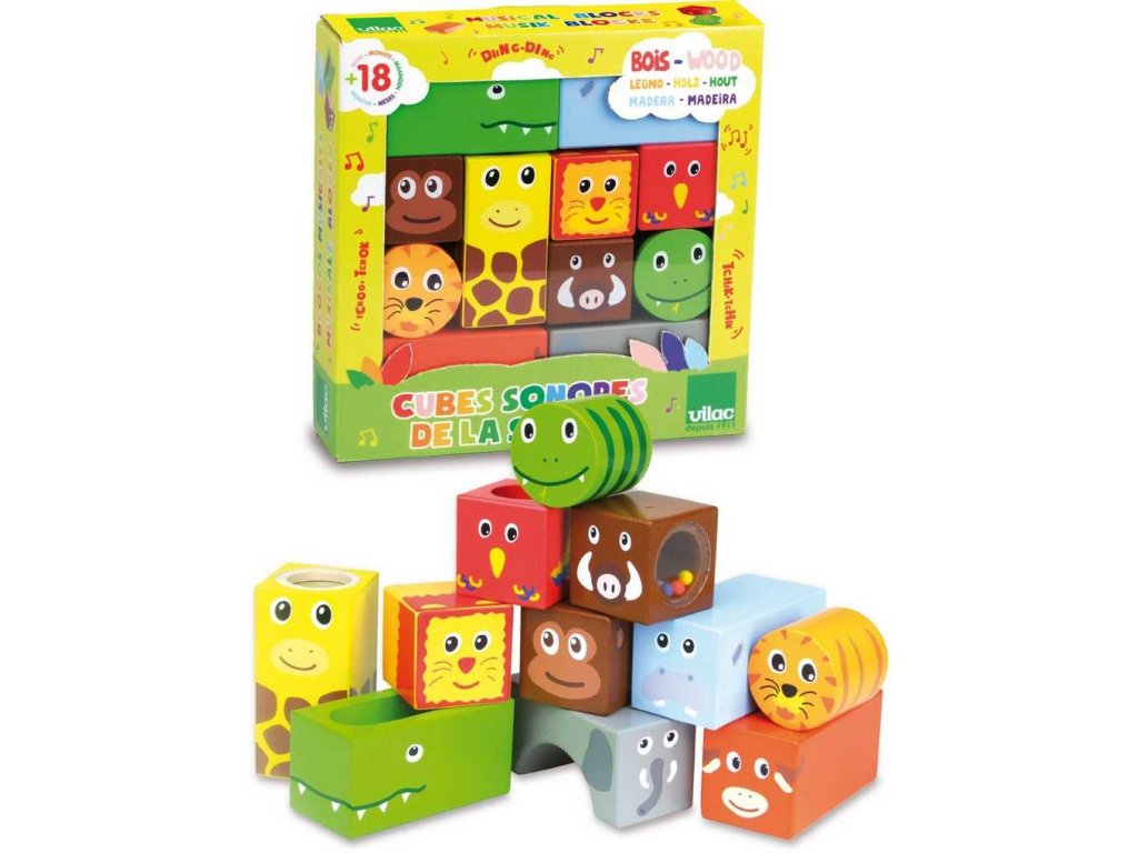 Holzklötze mit dem Motiv von Tieren aus der Savanne sind für die Kleinsten geeignet. Sie eignen sich hervorragend für die Entwicklung der motorischen Fähigkeiten und der Fantasie, Kinder können Geräusche erforschen oder nachahmen, was im Zoo passiert.