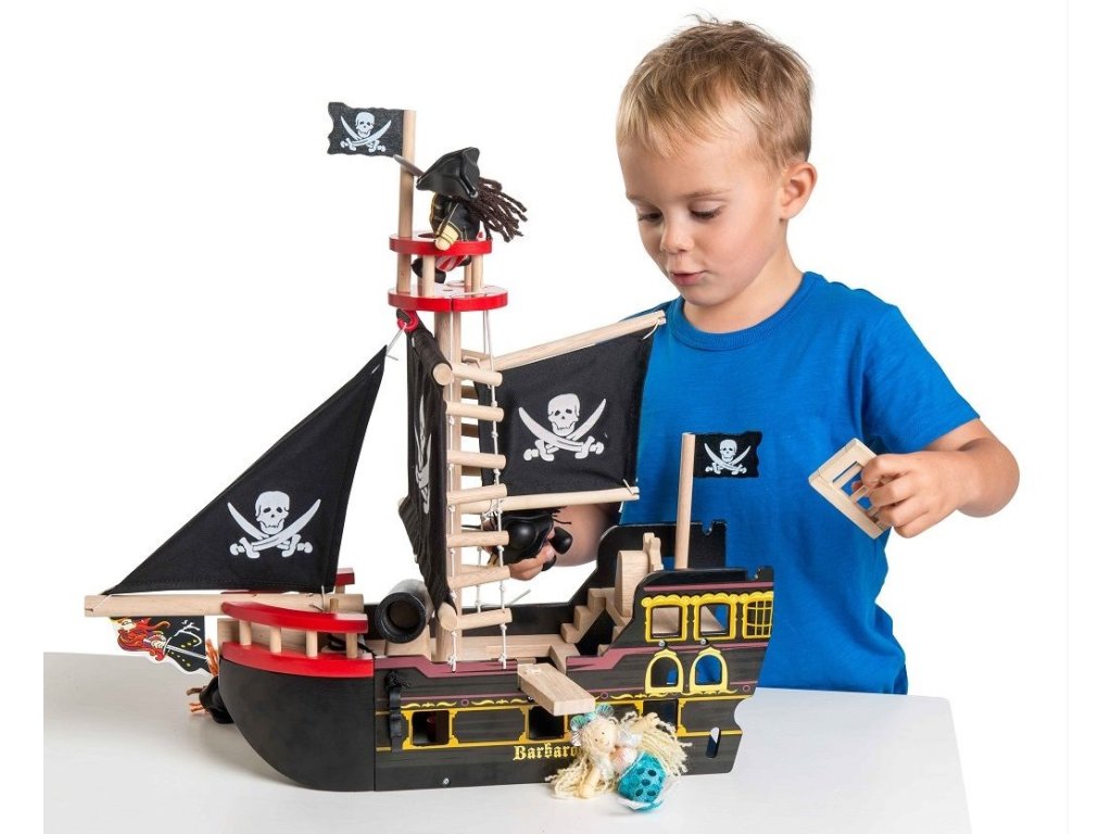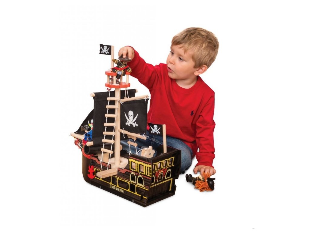 Piratenschiff mit schönen Details. Das Spielzeug eignet sich auch hervorragend als Dekoration. Mit diesem Spielzeug können Sie Ihre Kinder ganz einfach beschäftigen und sich einen Moment der lang ersehnten Ruhe gönnen.