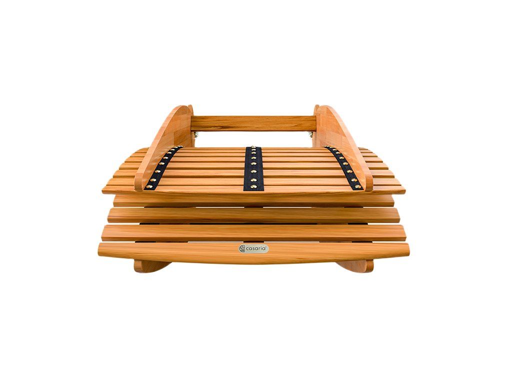 Mit einer hochwertigen Holzliege genießen Sie Entspannung bei jedem Wetter; sie eignet sich sowohl für den Innen- als auch für den Außenbereich. Die Liege ist mit einer Schwingungsdämpfung ausgestattet und lässt sich platzsparend zusammenklappen.