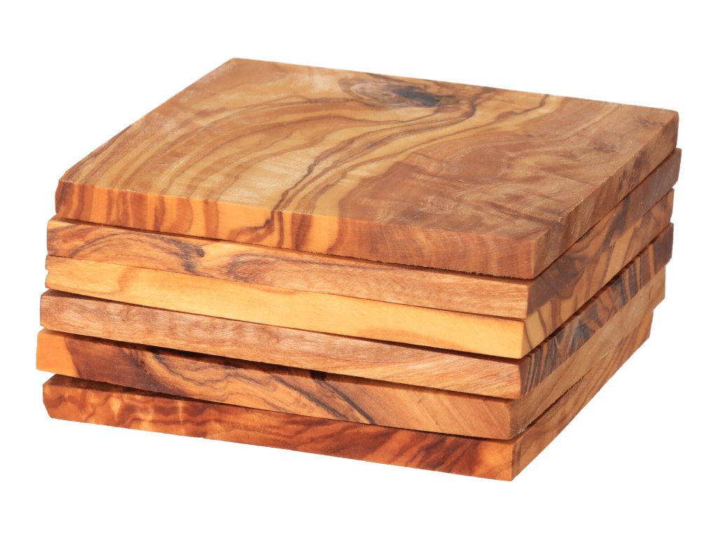 Set mit 6 quadratischen Untersetzern aus Olivenholz